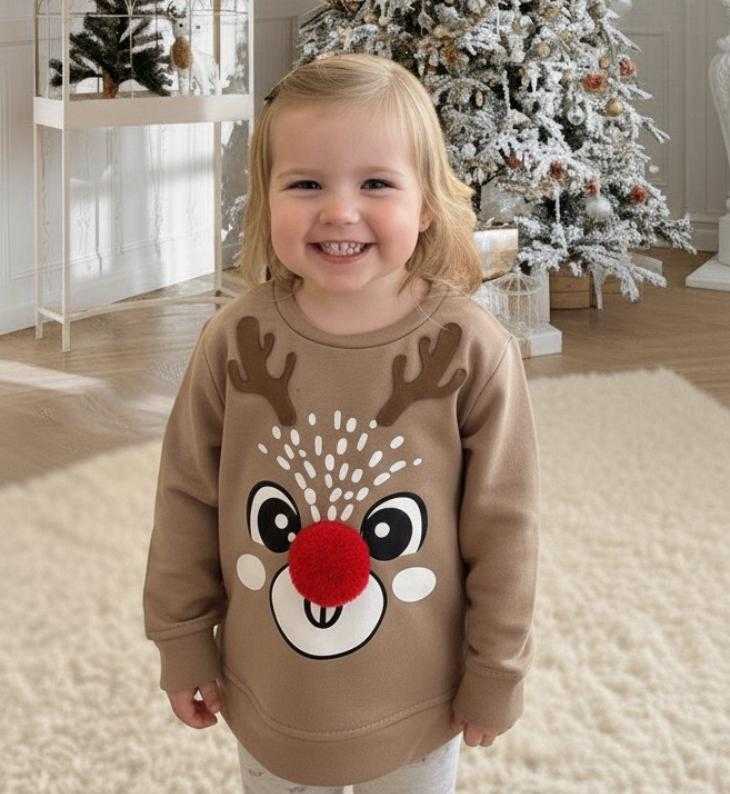 Nuestro buso de reno es perfecto para llenar de magia y calidez esta temporada. Su textura suave, cuernitos, pancita peludita y detalles encantadores harán que tu peque sea el más adorable