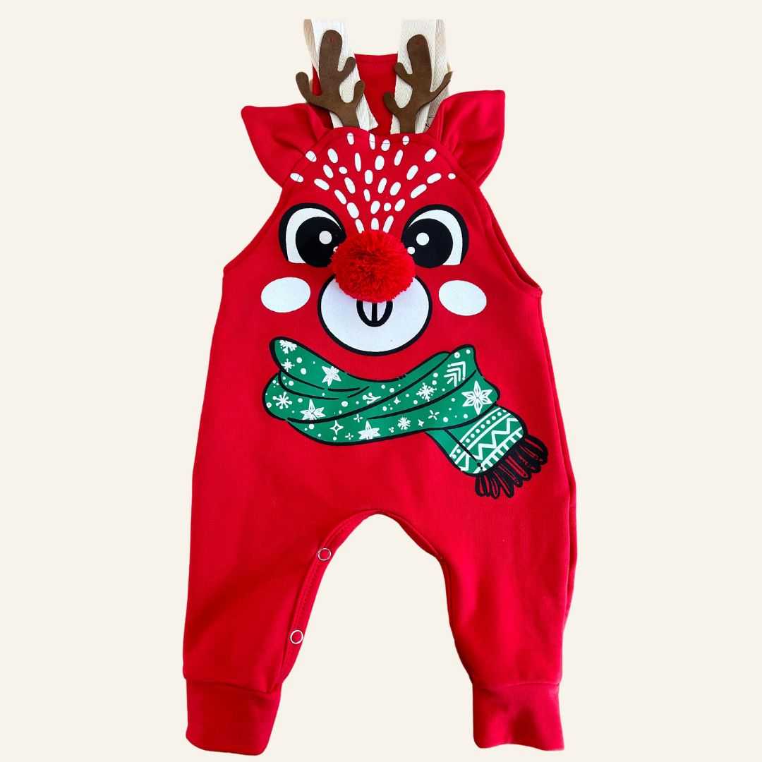 Nuestro overol de reno es perfecto para llenar de magia y calidez esta temporada. Su textura suave, cuernitos, pancita peludita y detalles encantadores harán que tu peque sea el más adorable