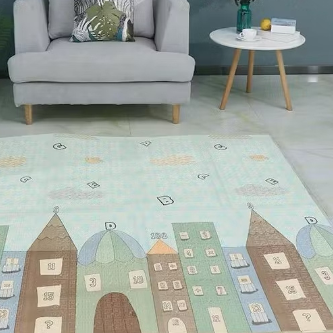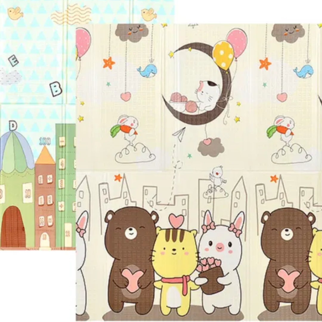 Tapete plegable para estimulación, gateo o zona de juego de tu bebé. Acolchado, impermeable, aislante, fácil de limpiar, fácil de transportar. Incluye bolsa de tela para que puedas llevarlo donde necesites con facilidad. Medidas: 1.80 x 2.00 mt, Grosor: 1.3 a 1.5 cm Material: XPE, no es tóxico.