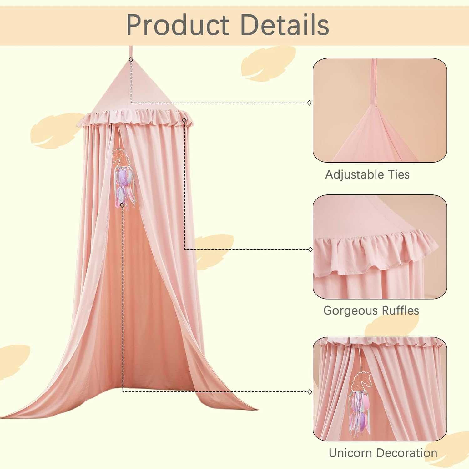 El toldo es una decoración única para la habitación de los niños. Se ve hermoso sobre la cuna o la cama del bebé, también para crearle un espacio de juego o de lectura.